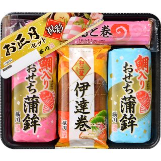 ・おせちに欠かせない紅白蒲鉾と伊達巻、赤なると巻の入った便利なお正月セットです。